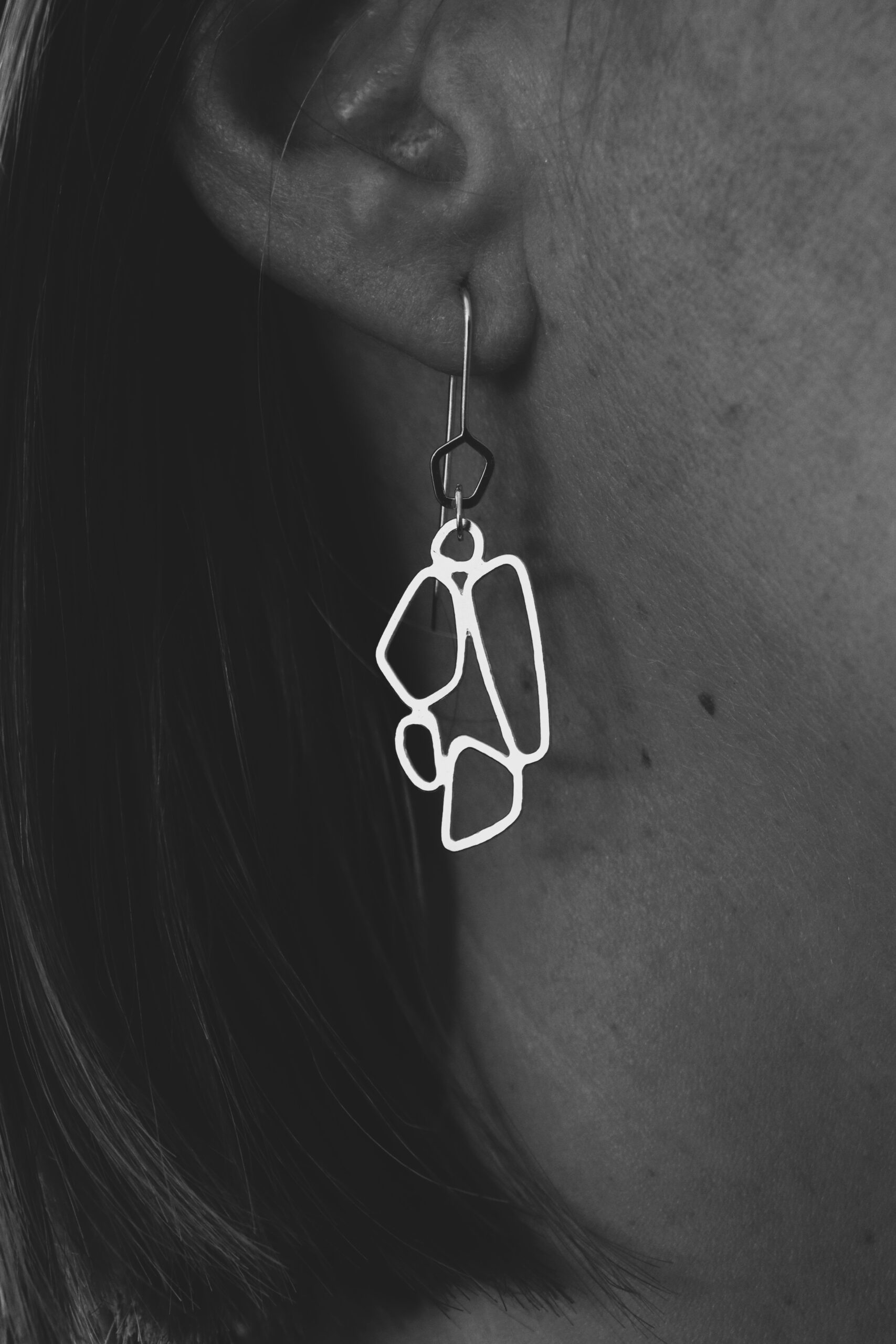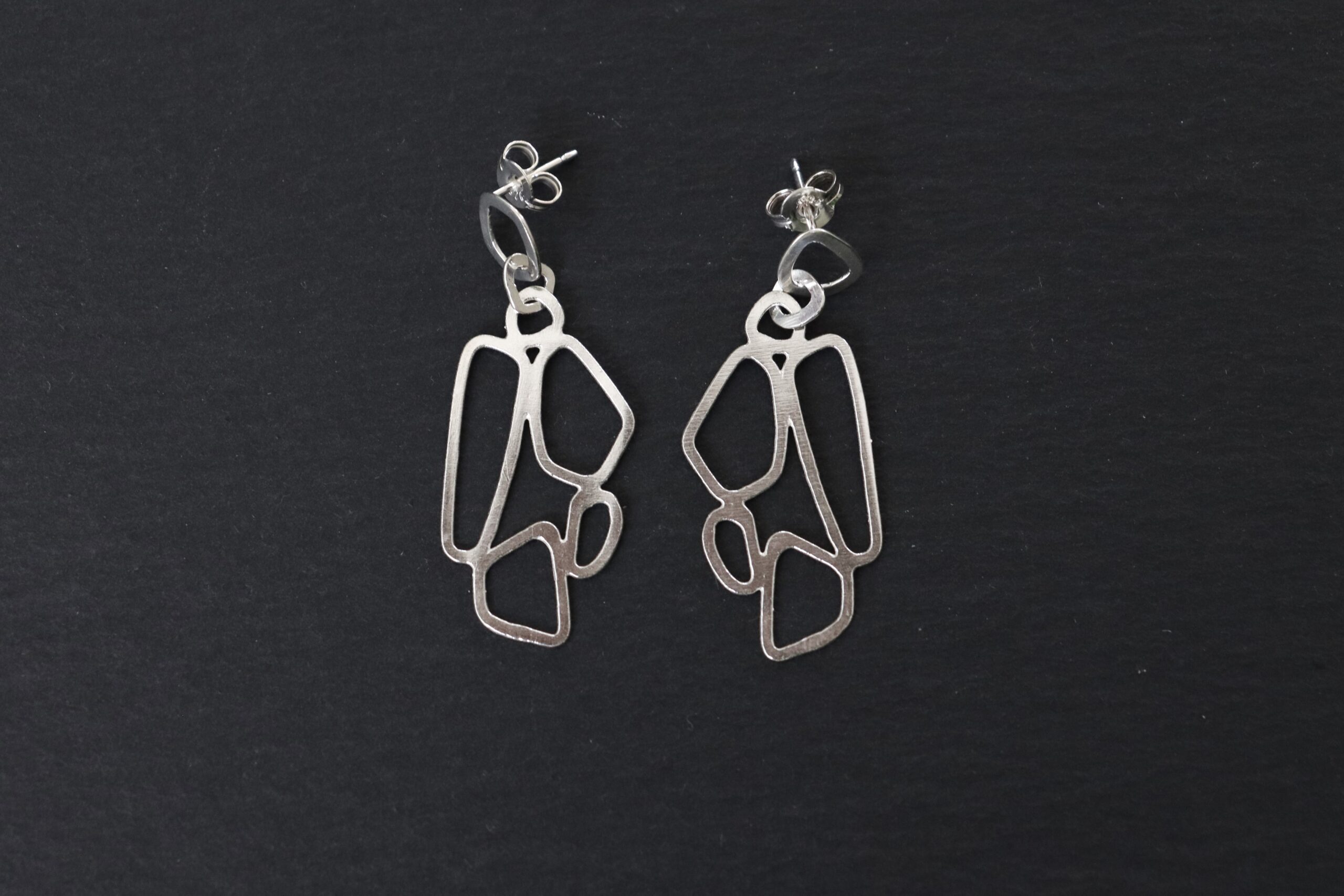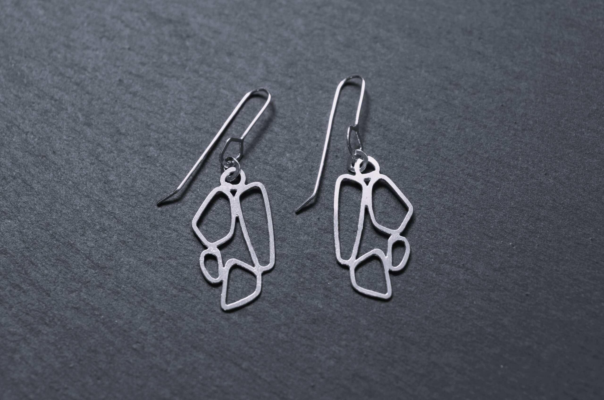 These striking earrings are sure to make an impression but small enough to be worn every day. Handmade in 925 silver with 5-7 clustered “pebbles” they are light and comfortable to wear. Each piece is handmade so may differ slightly from photos. These can be made with hooks or as studs with butterfly backs. Please allow 1-2 weeks of making time as they are made to order.